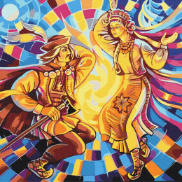 бавовняне полотно на дерев’яному підрамнику з нанесеною пронумерованою схемою майбутньої картини