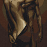 бполотно на лляній основі та дерев’яному підрамнику з нанесеною пронумерованою схемою майбутньої картини. Всі сегменти додатково пофарбовані в тон кольорів, якими буде зафарбовувати полотно