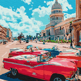 бполотно на лляній основі та дерев’яному підрамнику з нанесеною пронумерованою схемою майбутньої картини. Всі сегменти додатково пофарбовані в тон кольорів, якими буде зафарбовувати полотно