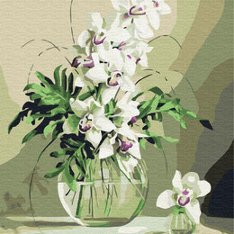 бполотно на лляній основі та дерев’яному підрамнику з нанесеною пронумерованою схемою майбутньої картини. Всі сегменти додатково пофарбовані в тон кольорів, якими буде зафарбовувати полотно