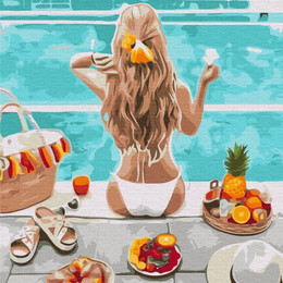 бполотно на лляній основі та дерев’яному підрамнику з нанесеною пронумерованою схемою майбутньої картини. Всі сегменти додатково пофарбовані в тон кольорів, якими буде зафарбовувати полотно
