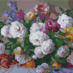 бполотно на лляній основі та дерев’яному підрамнику з нанесеною пронумерованою схемою майбутньої картини. Всі сегменти додатково пофарбовані в тон кольорів, якими буде зафарбовувати полотно