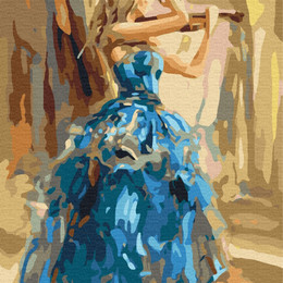 бполотно на лляній основі та дерев’яному підрамнику з нанесеною пронумерованою схемою майбутньої картини. Всі сегменти додатково пофарбовані в тон кольорів, якими буде зафарбовувати полотно