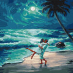 бполотно на лляній основі та дерев’яному підрамнику з нанесеною пронумерованою схемою майбутньої картини. Всі сегменти додатково пофарбовані в тон кольорів, якими буде зафарбовувати полотно