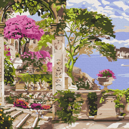бполотно на лляній основі та дерев’яному підрамнику з нанесеною пронумерованою схемою майбутньої картини. Всі сегменти додатково пофарбовані в тон кольорів, якими буде зафарбовувати полотно
