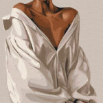 бполотно на лляній основі та дерев’яному підрамнику з нанесеною пронумерованою схемою майбутньої картини. Всі сегменти додатково пофарбовані в тон кольорів, якими буде зафарбовувати полотно
