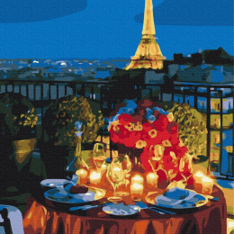 бполотно на лляній основі та дерев’яному підрамнику з нанесеною пронумерованою схемою майбутньої картини. Всі сегменти додатково пофарбовані в тон кольорів, якими буде зафарбовувати полотно