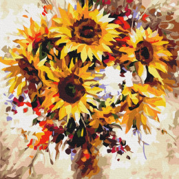 бполотно на лляній основі та дерев’яному підрамнику з нанесеною пронумерованою схемою майбутньої картини. Всі сегменти додатково пофарбовані в тон кольорів, якими буде зафарбовувати полотно