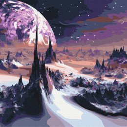 бполотно на лляній основі та дерев’яному підрамнику з нанесеною пронумерованою схемою майбутньої картини. Всі сегменти додатково пофарбовані в тон кольорів, якими буде зафарбовувати полотно