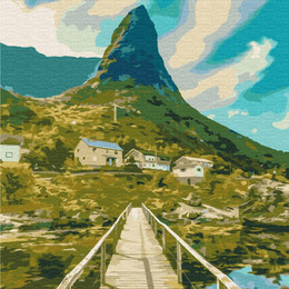 бполотно на лляній основі та дерев’яному підрамнику з нанесеною пронумерованою схемою майбутньої картини. Всі сегменти додатково пофарбовані в тон кольорів, якими буде зафарбовувати полотно