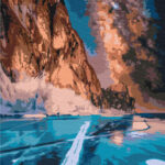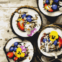 бполотно на лляній основі та дерев’яному підрамнику з нанесеною пронумерованою схемою майбутньої картини. Всі сегменти додатково пофарбовані в тон кольорів, якими буде зафарбовувати полотно