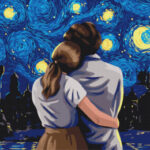 бполотно на лляній основі та дерев’яному підрамнику з нанесеною пронумерованою схемою майбутньої картини. Всі сегменти додатково пофарбовані в тон кольорів, якими буде зафарбовувати полотно
