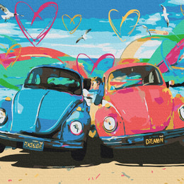 бполотно на лляній основі та дерев’яному підрамнику з нанесеною пронумерованою схемою майбутньої картини. Всі сегменти додатково пофарбовані в тон кольорів, якими буде зафарбовувати полотно