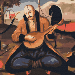 бполотно на лляній основі та дерев’яному підрамнику з нанесеною пронумерованою схемою майбутньої картини. Всі сегменти додатково пофарбовані в тон кольорів, якими буде зафарбовувати полотно