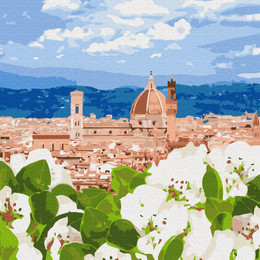 бполотно на лляній основі та дерев’яному підрамнику з нанесеною пронумерованою схемою майбутньої картини. Всі сегменти додатково пофарбовані в тон кольорів, якими буде зафарбовувати полотно