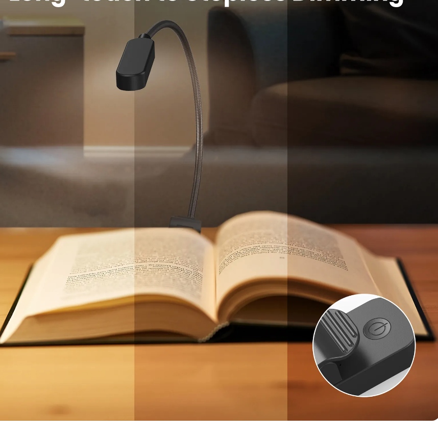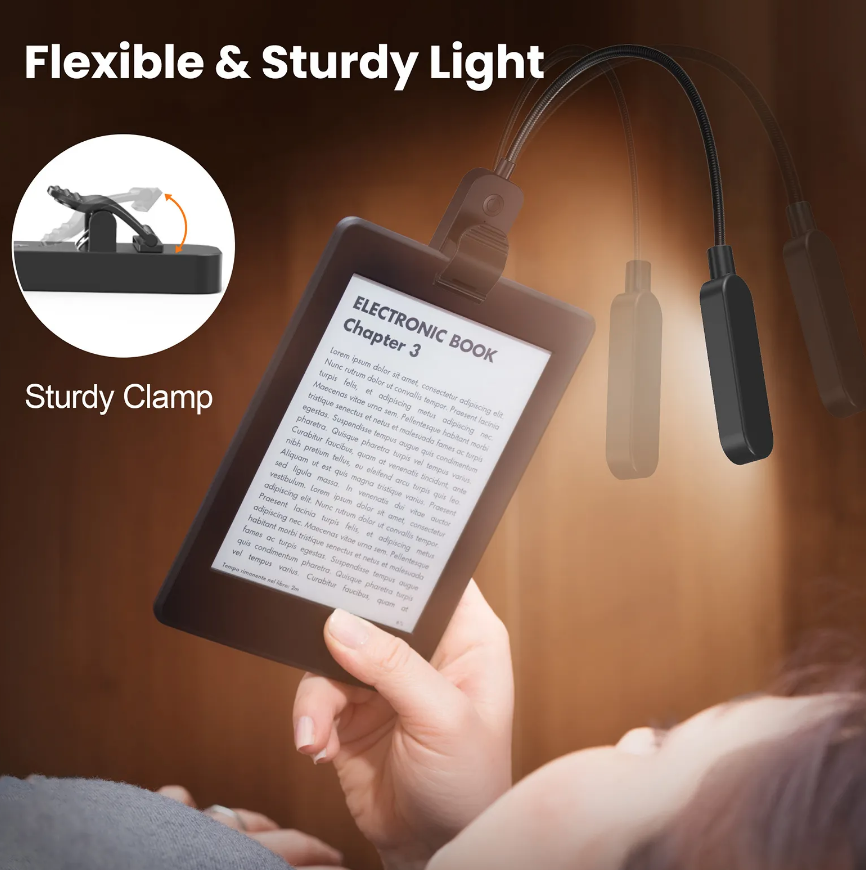 Простота в использовании: просто прикрепите светодиодный светильник для книг  к книге, кровати, ноутбуку, дивану или где угодно.